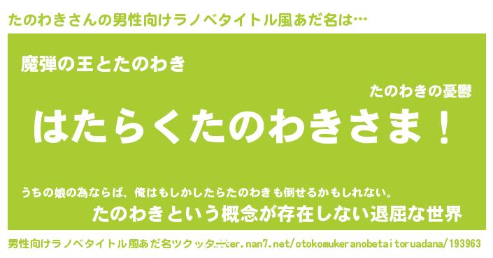 | 意味不明あだ名 | 『住所不定無職たのわき(89歳)』 |