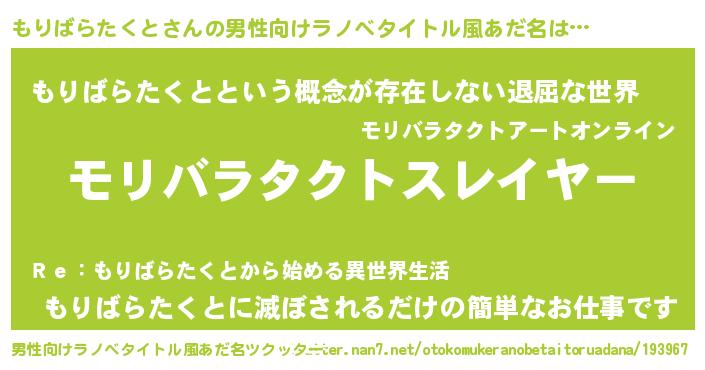 | ヒーロー風カッコイイあだ名 | 『ネオモリバラタクト』『仮面モリダー』 |