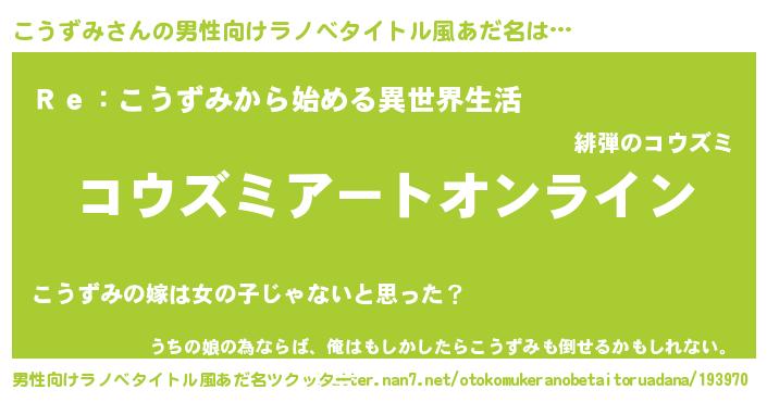 | ヒーロー風カッコイイあだ名 | 『スーパーコウズミ』『究極戦士コウズミ』 |