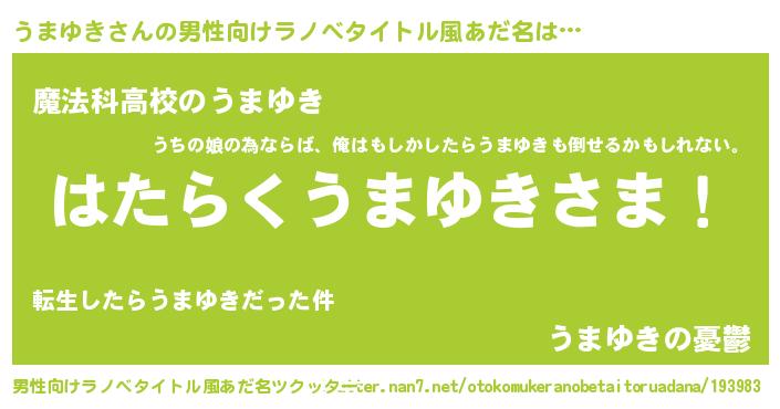 | ヒーロー風カッコイイあだ名 | 『超時空戦士ウマユキ』『仮面ウマダー』 |