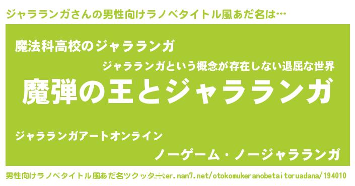 | ことわざ | 壁に耳あり障子に目あり『壁に耳あり障子にジャラランガ』 |