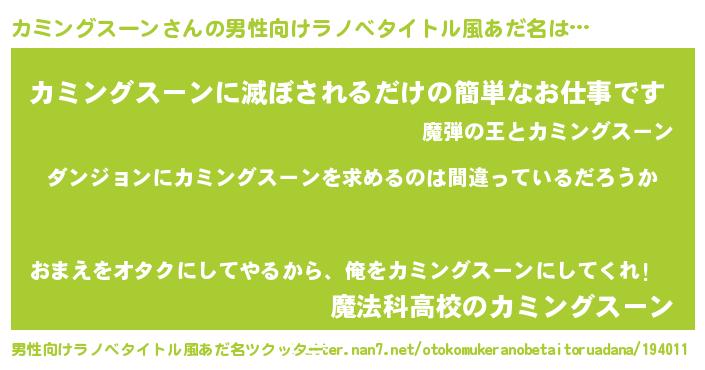 | 料理風あだ名 | 『カミングスーンの豆乳スープ』 |