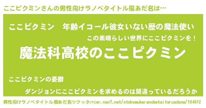 ここピクミンさんの男性向けラノベタイトル風あだ名をツクッター!