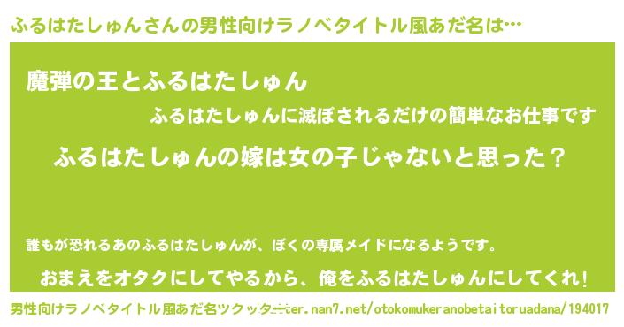 | 女子向けラノベタイトル風あだ名 | 『ふるはたしゅん様がみてる』 |