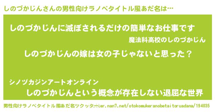 | 女子向けラノベタイトル風あだ名 | 『しのづかじん様がみてる』 |