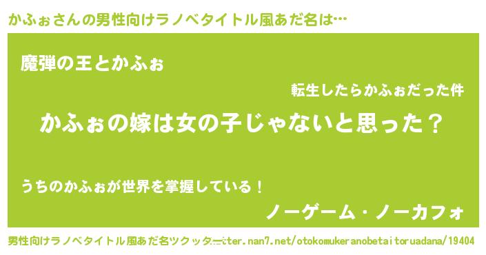 | 女子向けラノベタイトル風あだ名 | 『かふぉ様がみてる』『死神かふぉの再婚』 |