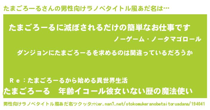 たまごろーるさんの男性向けラノベタイトル風あだ名をツクッター!