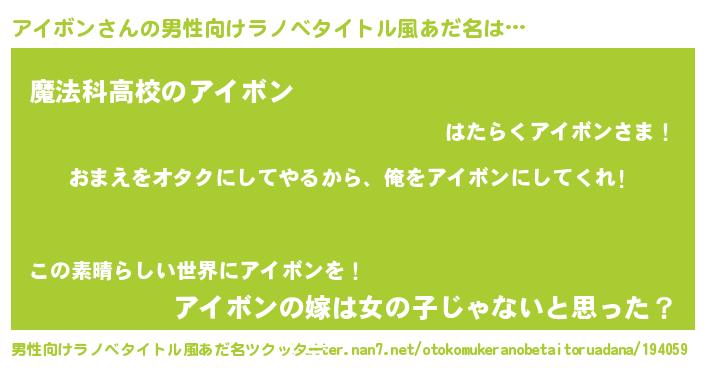 | 女子向けラノベタイトル風あだ名 | 『アイボン夫妻のなれそめ』 |