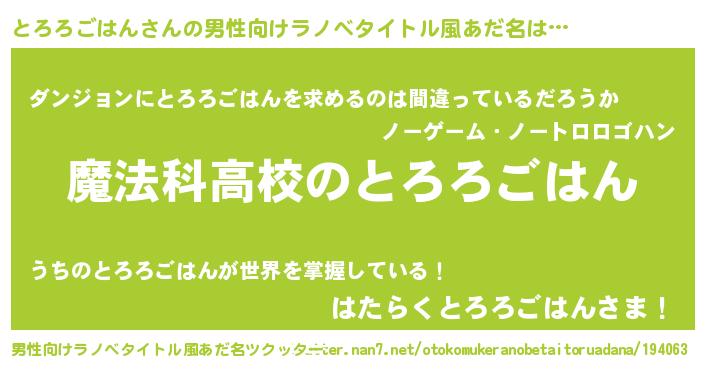 とろろごはんさんの男性向けラノベタイトル風あだ名をツクッター!