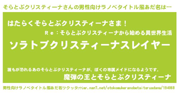 | 伝説のあだ名 | 『聞きしに勝る勇者そらとぶクリスティーナ』 |