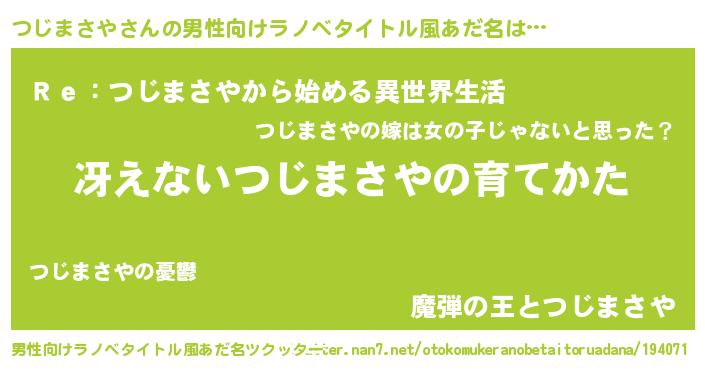 | 女子向けラノベタイトル風あだ名 | 『男装つじまさやの憂鬱な任務』 |