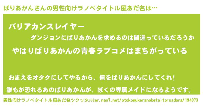 | 女子向けラノベタイトル風あだ名 | 『ばりあかんの雑貨屋さん』 |