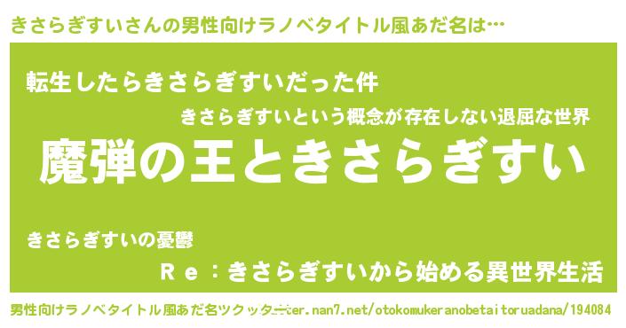 | 女子向けラノベタイトル風あだ名 | 『きさらぎすいが死なない童話 林檎のきさらぎすいの診療簿』 |