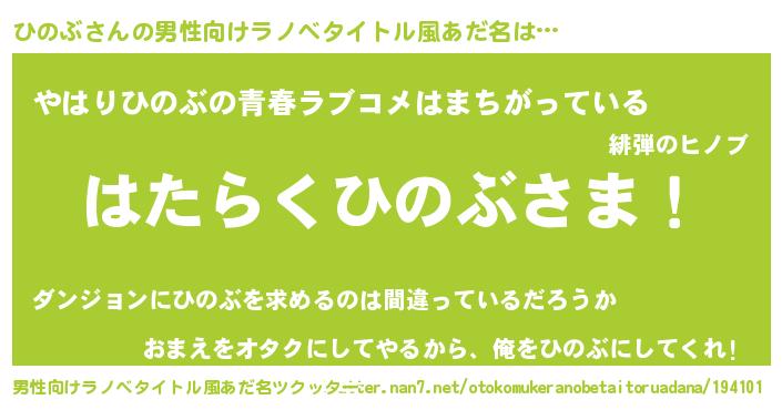 | 胡散臭い通販商品みたいなあだ名 | 『世界が平和になる高級そうな皿…その名も「ひのぶ」』 |