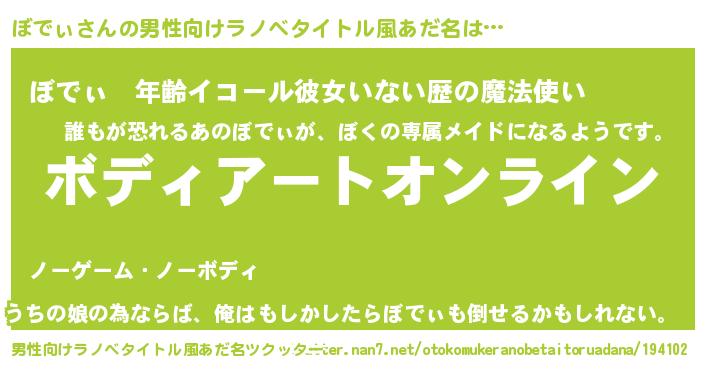 | 胡散臭い通販商品みたいなあだ名 | 『億万長者になれるブレスレット…その名も「ぼでぃ」』 |