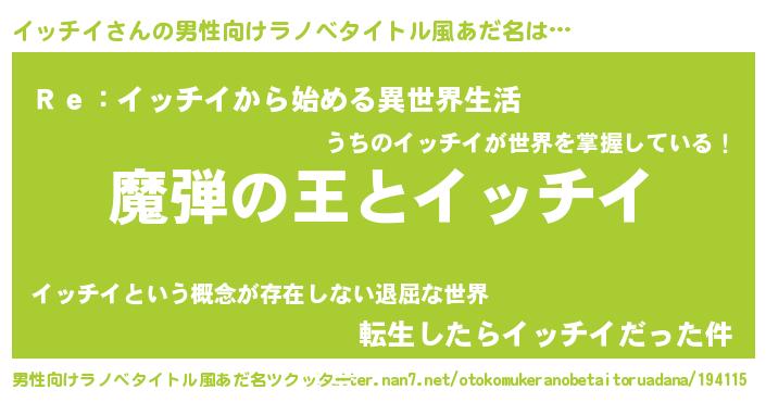 | 女子向けラノベタイトル風あだ名 | 『乙女ゲームの破滅フラグしかない悪役イッチイに転生してしまった…』 |
