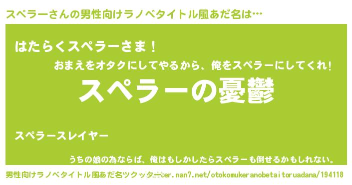 | 意味不明あだ名 | 『ペロリンスペラー』『永久保存スペラー』 |