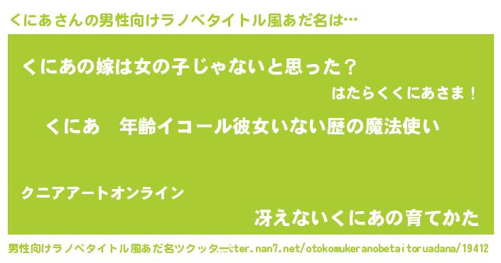 | 女子向けラノベタイトル風あだ名 | 『くにあの玉の輿計画!』 |