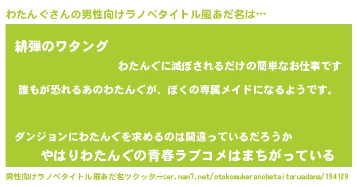 | 胡散臭い通販商品みたいなあだ名 | 『前代未聞の健康食品…その名も「わたんぐ」』 |