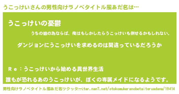 | ヘコむあだ名 | 『うこぷりん』『うこにー』 |