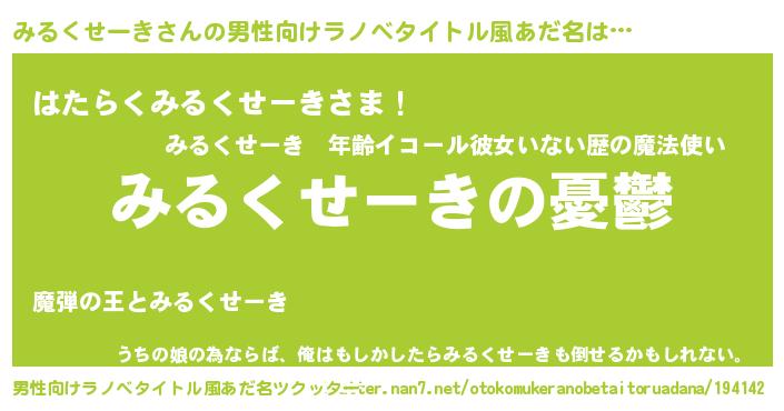 | 胡散臭い通販商品みたいなあだ名 | 『必ず成功するブレスレット…その名も「みるくせーき」』 |