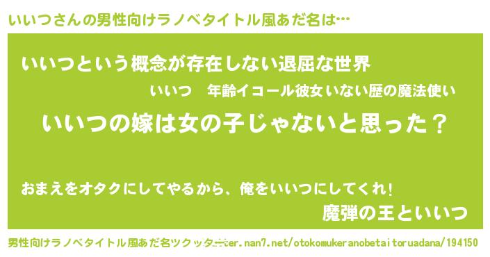 | 胡散臭い通販商品みたいなあだ名 | 『全米が絶賛したサプリメント…その名も「いいつ」』 |