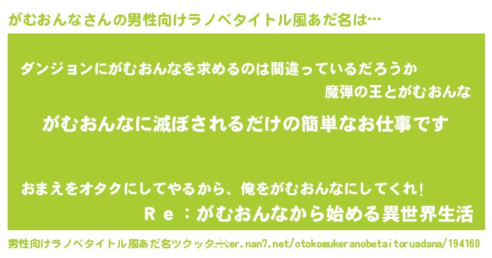 | 胡散臭い通販商品みたいなあだ名 | 『全米が絶賛したサプリメント…その名も「がむおんな」』 |