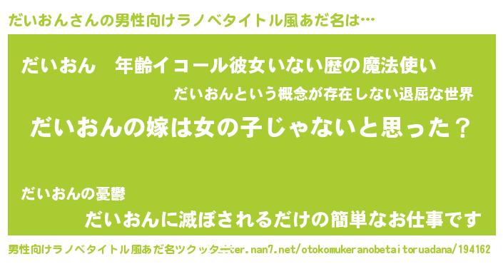 | 意味不明あだ名 | 『とにかく怪しいだいおん』 |