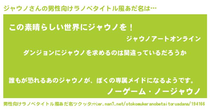 | 女子向けラノベタイトル風あだ名 | 『ジャウノは平凡を望む』 |