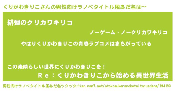 | ファンタジー風あだ名 | 『エターナルクリカワキリコー』 |