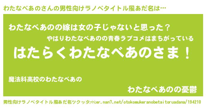| 女子向けラノベタイトル風あだ名 | 『首の姫と首なしわたなべあの』 |