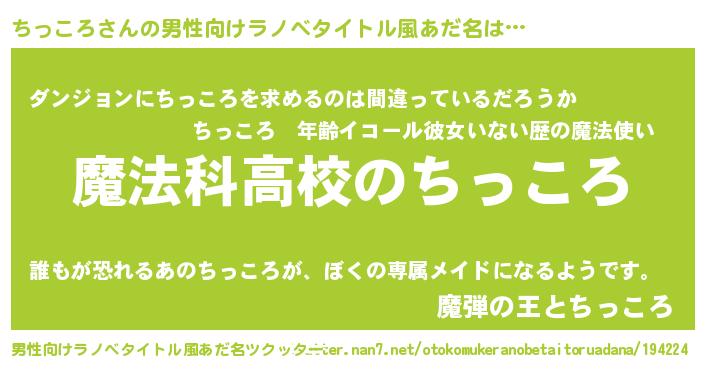 ちっころさんの男性向けラノベタイトル風あだ名をツクッター!