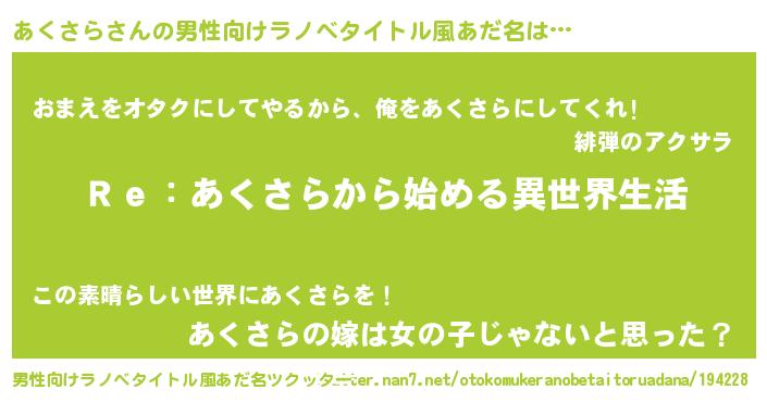 | 意味不明あだ名 | 『自称あくさら』『永久保存あくさら』 |