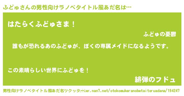 | ヘコむあだ名 | 『ふどゅ(苦笑)』『ふどにー』 |