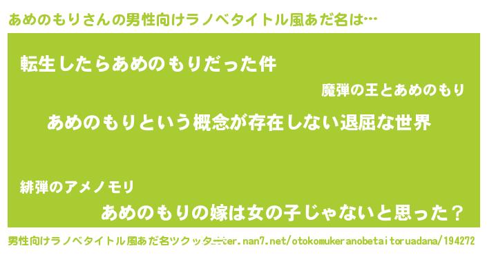 | ヘコむあだ名 | 『あめのもり(小並感)』『あめっ子』 |