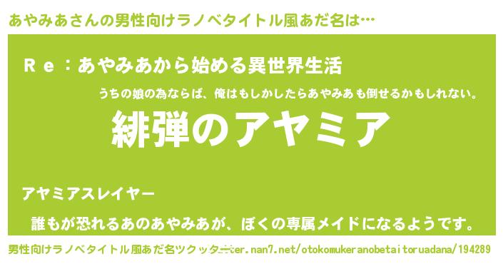 | 意味不明あだ名 | 『自称あやみあ』『永久保存あやみあ』 |