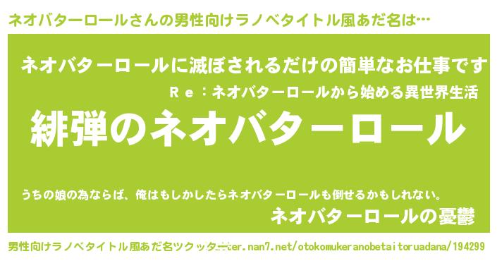 | ヒーロー風カッコイイあだ名 | 『スーパーネオバターロール』 |