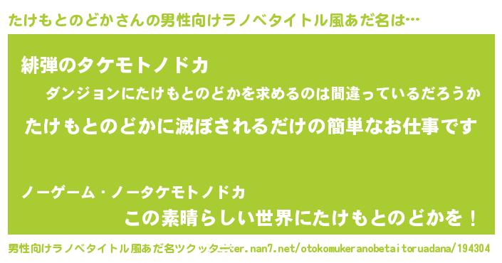 | ヘコむあだ名 | 『たけを』『たけもとのどか(遠い目)』 |