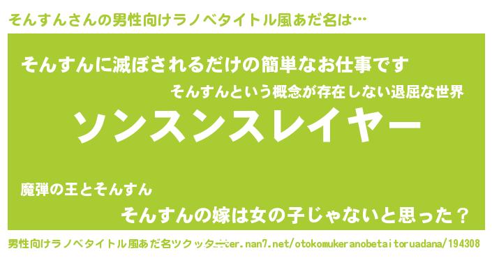 | 胡散臭い通販商品みたいなあだ名 | 『信頼と実績のネックレス…その名も「そんすん」』 |