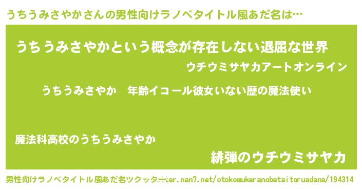 | 胡散臭い通販商品みたいなあだ名 | 『前代未聞の健康食品…その名も「うちうみさやか」』 |