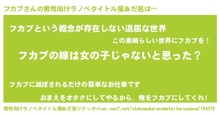 | 女子向けラノベタイトル風あだ名 | 『フカブ様がみてる』『フカブ恋絵巻』 |
