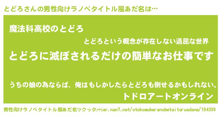 | ヘコむあだ名 | 『とどっふぃ~』『とどろ(震え声)』 |
