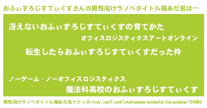 | 胡散臭い通販商品みたいなあだ名 | 『テレビで話題の高麗人参…その名も「おふぃすろじすてぃくす」』 |