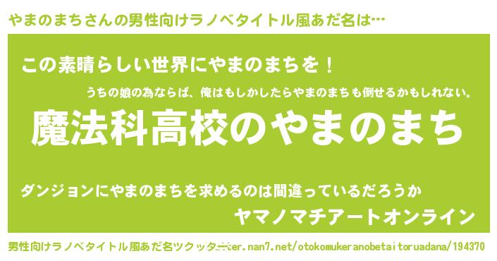 | 女子向けラノベタイトル風あだ名 | 『やまのまちなんてお断りですっ。』 |