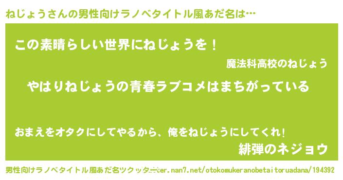 | 胡散臭い通販商品みたいなあだ名 | 『幸せが訪れる高級そうな壺…その名も「ねじょう」』 |