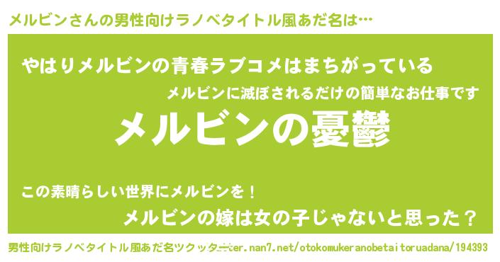| 女子向けラノベタイトル風あだ名 | 『メルビン姫と円卓の騎士』 |