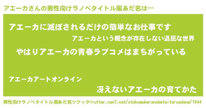 | 自動車の名前っぽいあだ名 | 『アクア』『ランアエギーニ』 |