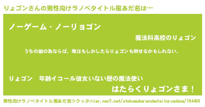 | 意味不明あだ名 | 『りょゴンフォーエバー』『自称りょゴン』 |
