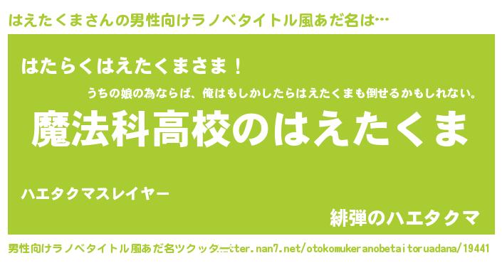 はえたくまさんの男性向けラノベタイトル風あだ名をツクッター!
