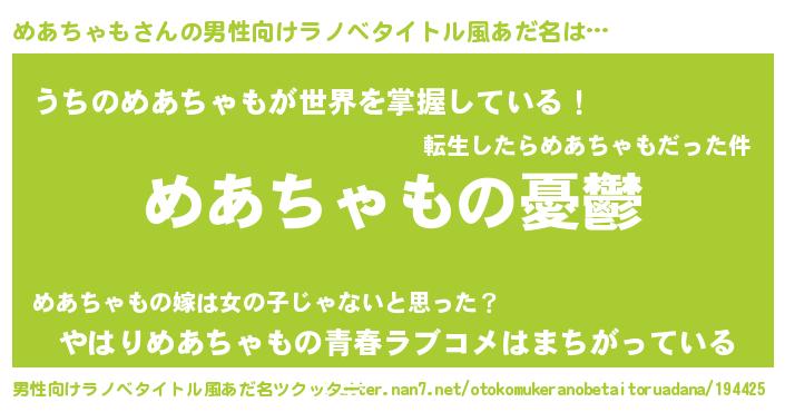 | 女子向けラノベタイトル風あだ名 | 『めあちゃも姫と円卓の騎士』 |